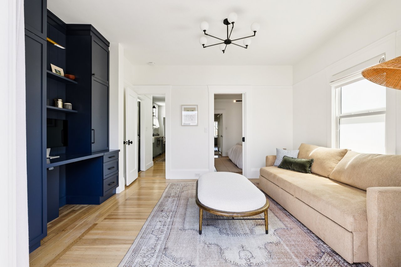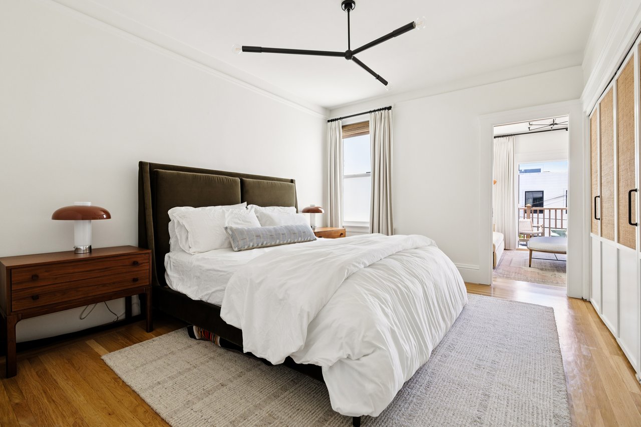 Steps from the waterfront on one of the Marina's most coveted blocks, this top-floor condo in a quiet two-unit building was gutted and fully redesigned in 2025 with no expense spared. The owners worked with JAM Interior Design to create something that felt earthy, comfortable, and layered, not "just renovated." The result was so striking it landed a full feature in Rue Magazine.